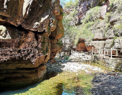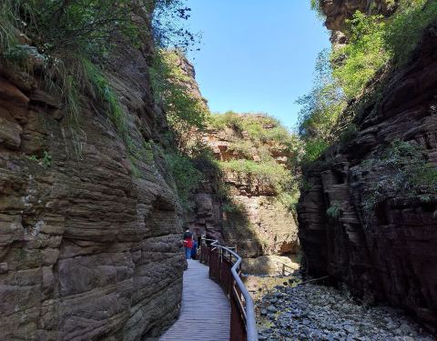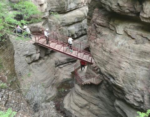 辉县万仙山风景区主南坪村其实是和郭亮村紧邻的一个村,南坪村主要是看自然风光,以峡谷和瀑布景观为主,山势险峻,峡谷幽深,风光秀丽。因山高,建议坐景区车上到山顶往下走,这样比较省力。