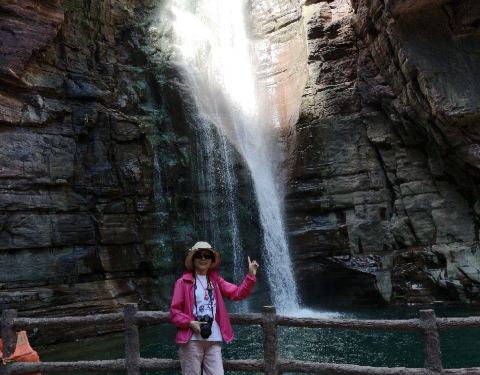 我们就去了万仙山南坪景区的黑龙潭景点,下了车我们沿着峡谷旁边的山路边走边看,如同进入仙境一般,幽深的小路,清新的空气,路旁巨大的石头,自然原始,美!黑龙潭深28米以上,瀑布直泻而下,壮观!小瀑布也有情调,来旅游吧!我觉得值!