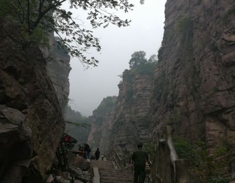 从郭亮村乘观光车至南坪,再叫了辆车送至丹分沟,一路直向下游览,地质地貌很特别