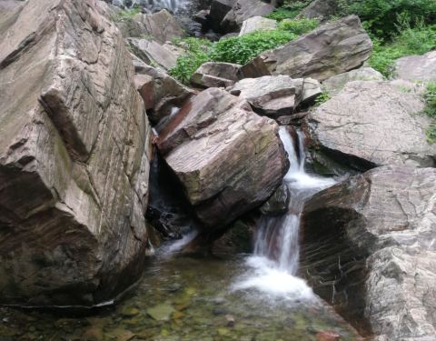 丹分沟水色天下一流,瀑布群分布在两公里左右的山沟里,形色各异,美不胜收。在龙潭沟坐公交六公里到丹分村一路下行约一小时走完全程,老少皆宜。