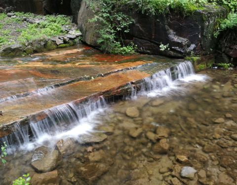 丹分沟水色天下一流,瀑布群分布在两公里左右的山沟里,形色各异,美不胜收