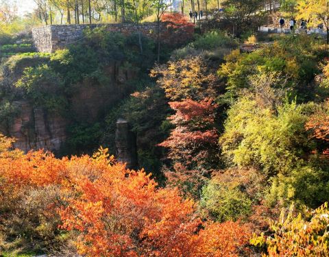 风景挺美的。这个峡谷的步行设施还不错。太行山里到处都是峡谷。但不是每个峡谷都已经开发得可以深入其中的风景挺美的。红色的岩壁直上直下。太行山里到处都是峡谷。但不是每个峡谷都已经开发得可以深入其中的。这个峡谷的步行设施还不错。可以深入进去,细细的看。