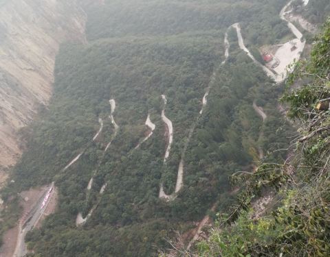 ...到对面的挂壁公路,不得不佩服人的智慧与胆量,再往前走还能欣赏到盘山公路,像条巨龙蜿蜒前行,壮观