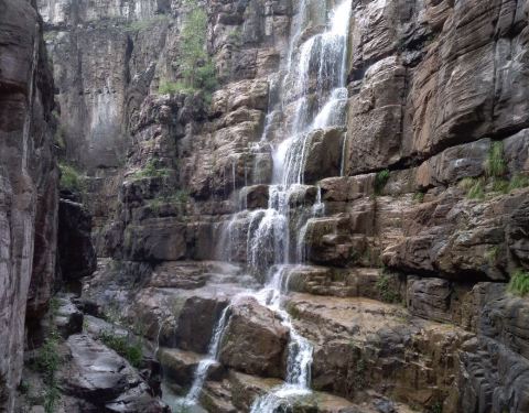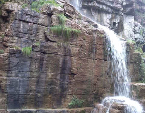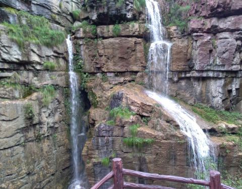 云台山的红岩绝壁就是红石峡二旁的红色岩壁,要在雨后太阳再照射上去的时候,才能看到你在平时景区宣传照片中的景色,一般情况下运气没这么好的。