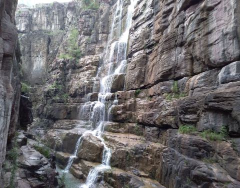 景色迷人,山清水秀,是一个拍照取景的好地方。置身山中,神清气爽,令人心旷神怡,瀑布喷流直下,大好河山一览无余,整个山体呈红色。