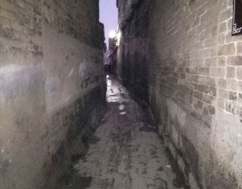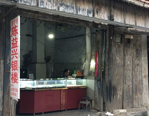 一条准备拆迁的老街。青石板铺设的路面很有历史感。两边的房屋有的住有人家,多以银楼为主;有的已经无人居住,接近废弃。