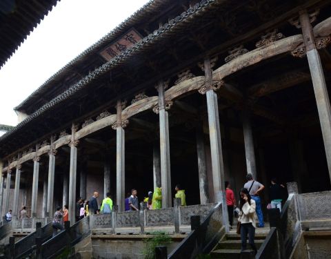 罗东舒祠 建于明嘉靖年间 ,总工程花了将近十年的时间, 其全部格局按山东孔庙格式, 建筑 精美 罕见, 得名“江南第一祠”。房梁纹饰、雕工都是极尽精致繁复。