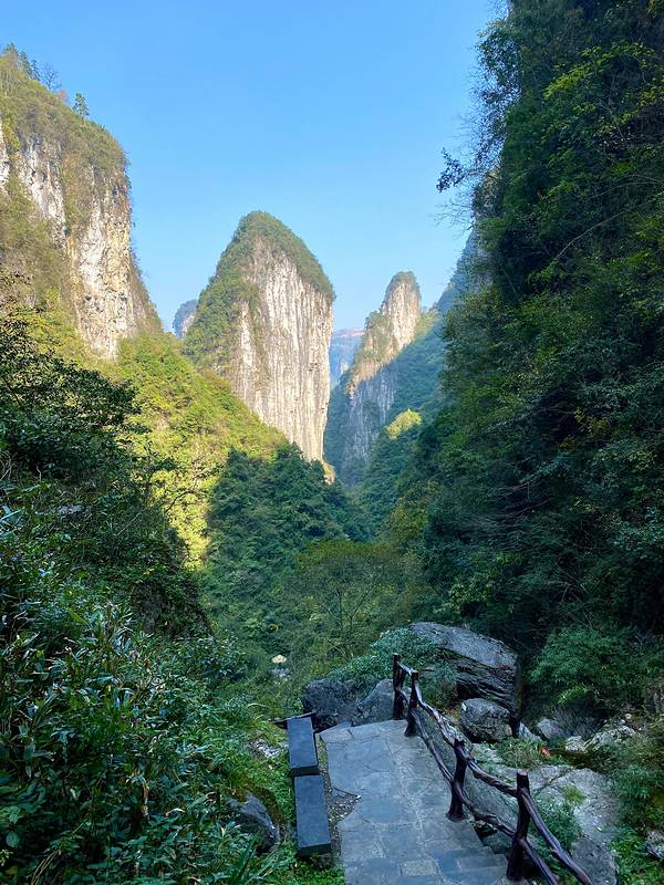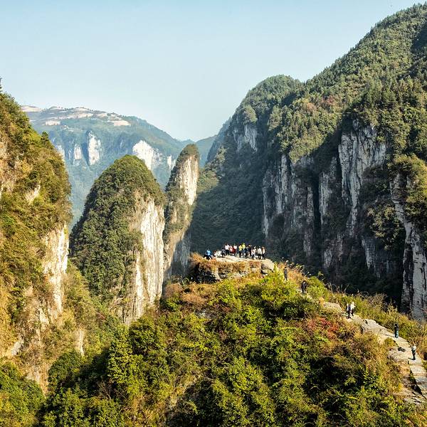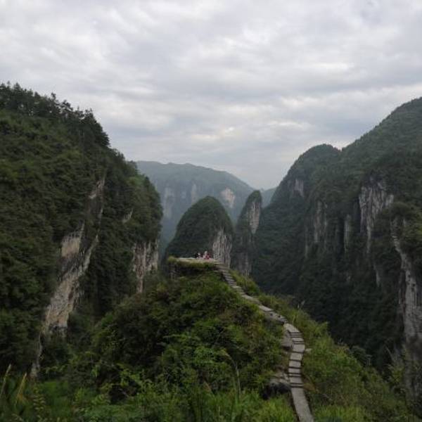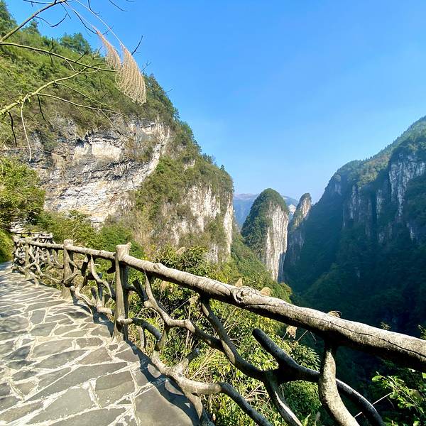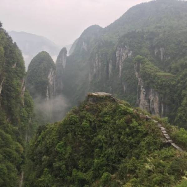 初到湘西,眼前的景色还是很震撼的,壮美的自然风光。天问台在游客中心旁边的大石头后面就是去天问台的路天问台在游客中心旁边的大石头后面就是去天问台的路。很近,走十几分钟的样子,穿过一个寨子就到了。初到湘西,眼前的景色还是很震撼的,壮美的自然风光。