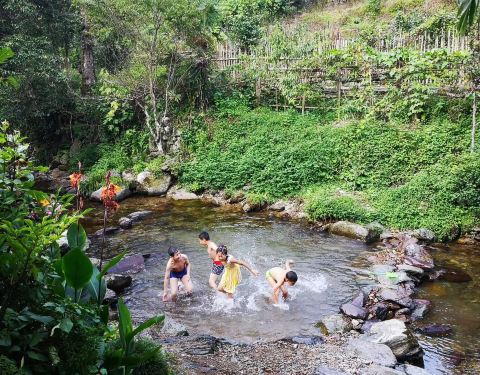 自然风光很不错。溪水干净清澈,空气清新。就是比较偏远。交通不太方便。可以雇竹筏在水上顺流而下。游客基本上没有,很舒服。