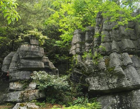 恩施梭布垭石林磨子沟景区:位于恩施梭布垭石林风景区内,以溶洞和天然石縫为主,并有吊石、悬树、奇岩、异峰、峡谷等奇异景观,一路走来,惊喜不断。