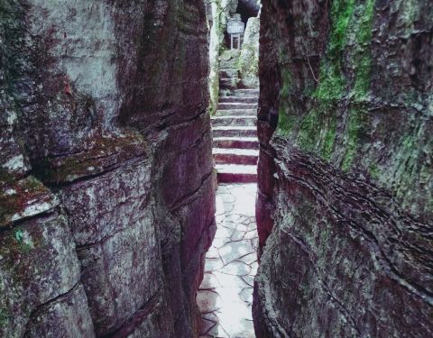 相传梭布垭磨子沟是由一块形似石磨的岩石而得名。磨子沟景区有很多因地壳演变而成的天然溶洞和石缝,其虽说是梭布垭四景区中较小的一个,但是景区内一些奇峰怪石、溶岩峡谷还是很值得一看。