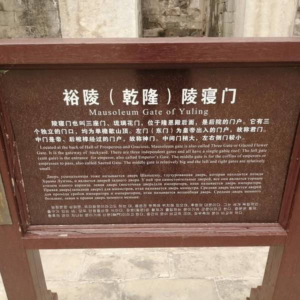 在馆内出来后先去乾隆的裕陵参观乾隆的裕陵,慈禧的定东陵,乾隆的妃子和香妃都在这附近乾隆的隆恩殿里还有一些展品可参观陵寝的大门陵前摆放的物件是皇帝的规格地宫里相对外面的酷热真是太凉爽了当年裕陵也惨遭...