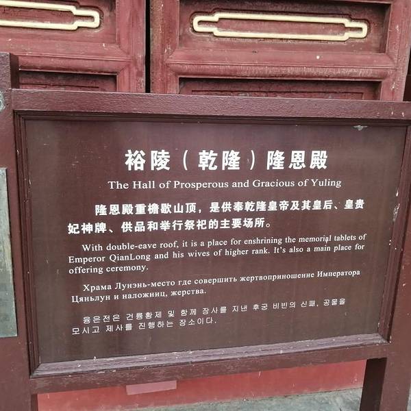 在馆内出来后先去乾隆的裕陵参观。乾隆的隆恩殿里还有一些展品可参观。最有名的当属乾隆的龙泉宝剑了