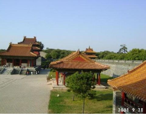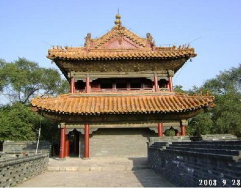 北陵公园内,居于方城与宝城之间。前方有一琉璃照壁,上面刻画有13朵牡丹花,据说此照壁后面就是地宫,按一定顺序按动牡丹花与叶,便可开启地宫门。试了会儿,没打开。