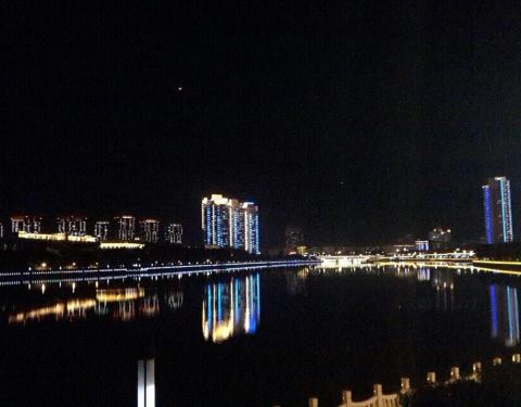 劳动湖的夜景很漂亮水波光粼粼 夜灯风姿闪耀 还有千家灯火明亮