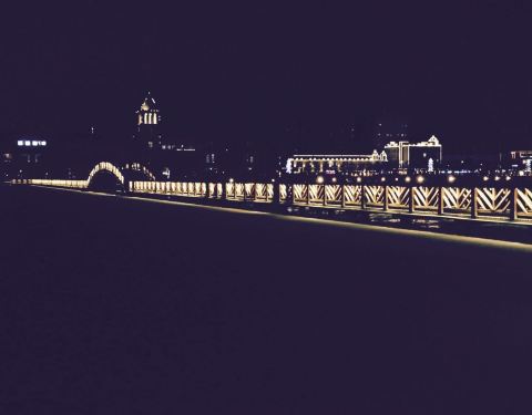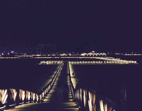 华灯初上,环湖远眺,清幽的夜色流泻着七彩的霓裳