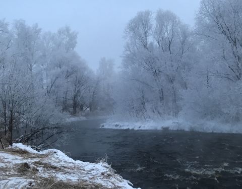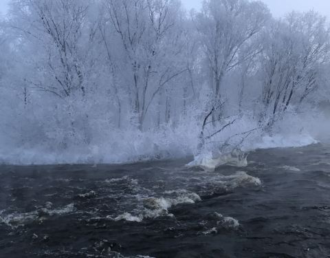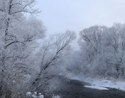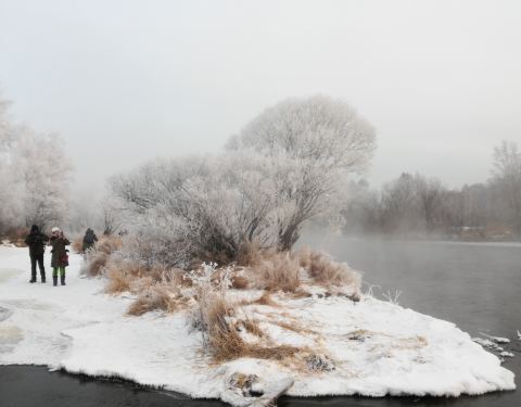 有机会再去一次,特别提醒一定要水库上游电站放水才能看到雾凇,我们是第二天一早就看到了