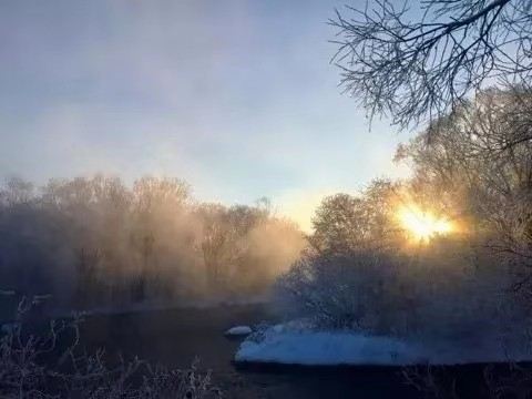 那里是个远离市区喧嚣,宁静心灵的好地方,河边的雾松宛如人间仙境,摇晃树干,挂雪纷纷落下,人置身其中 照的照片很美。那里很冷洒水成冰,农家饭菜也很好吃,还有铁锅炖当地野鱼。住的新华旅店,老板大哥,大姐很热情。能感受到当地民风的淳朴,没有城市里的勾心斗角。