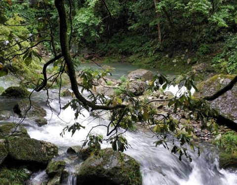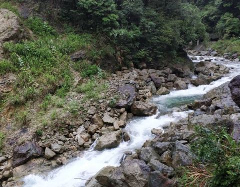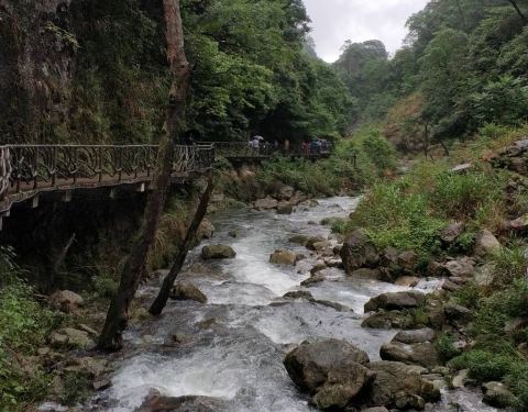 梅雨季节,淋着雨进山,但是栈道修得很好走,水大很壮观