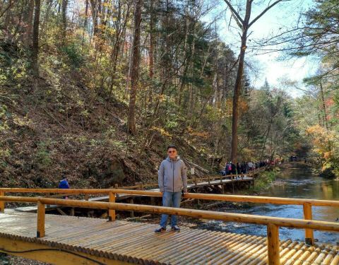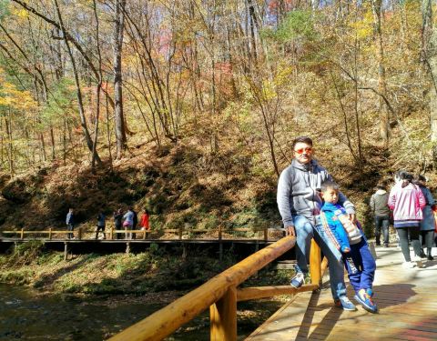 夏天去行,孩子可以玩玩水。秋天一切都萧条了。顺着岸边的栈道能走出40多分钟去。自驾的还得原路返回,建议。走到中间的小瀑布时就往回走吧!