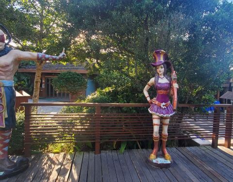 在天堂热带植物森林公园的顶部,有一条商业街,因地处北纬18度,故名北纬18度天街,这里有许多精致的酒吧和饭馆,还有可以免费品尝咖啡的咖啡馆,当然由于咖啡味道好极了,我们后来都出手了。