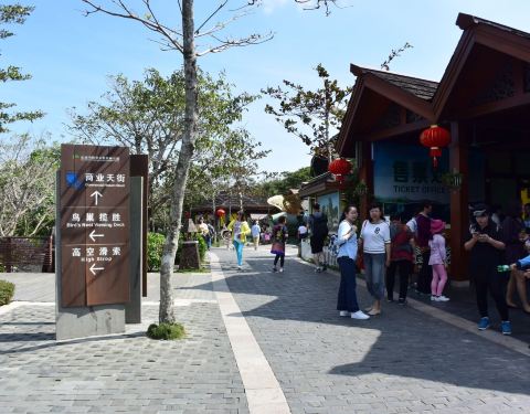 去海南旅游,来到了三亚,到亚龙湾热带森林公园游玩,其中这里是商业天街,它位于玻璃桥景点的旁边。坐上景区的电瓶车去到玻璃桥站,下了车以后,见到一个通往山顶公园的路口,往里走就是了,又或者可以进入玻璃...