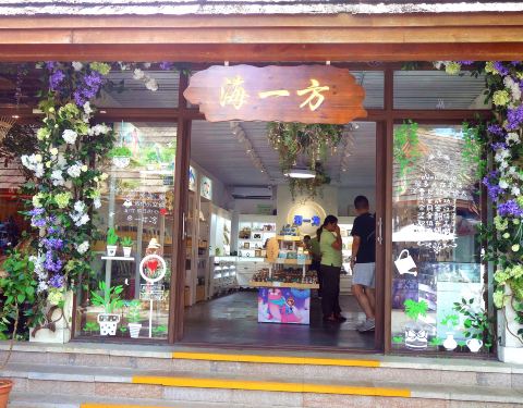 北纬18°天街,景区的最高点,天街上有一条商业街,街上有许多装饰精美的小店,每一间都值得进去走走看看,店里主要以手工艺品、明信片等比较有纪念意义的商品为主,也不乏三亚的特色小吃,可以在这里买买纪念品或者品尝特色美食。