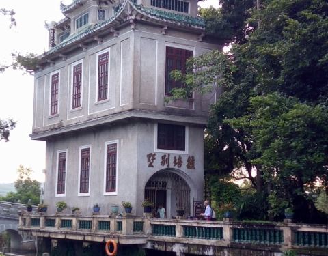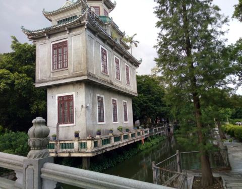 严格来说这座建筑不是碉楼,但是借鉴了很多碉楼的特性,偏居园林的一角,濒临运河,更增加了它的别致魅力,加上轻巧的外形,非常不错的一个建筑。