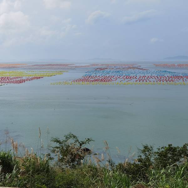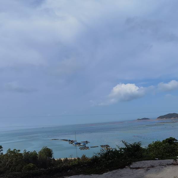 海上渔村不是行政上的自然村,而是一片养殖场。有几十个鱼排,每个鱼排上面都有漂浮,五颜六色,蓝天下很好看,坐601环岛旅游专线照的相片,景点本身要买票,觉得在外面看也是差不多,就没有买票进去了。坐公交车拍的