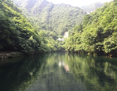 金丝峡内风景各有独特之处,山抱着水,水映着山,仓山绿树,美不胜收