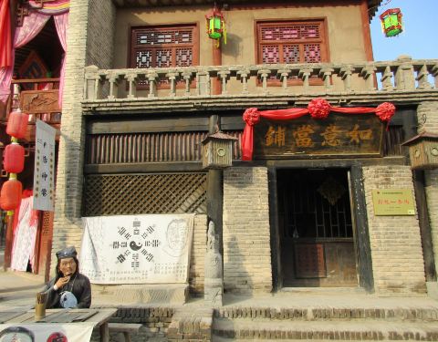 清城的这条“街道”完全是由电影电视艺术家修建起来的,它已经成为以中国西部为题材的电影电视剧中不可缺少的背景了。在这条所谓的“街”上,演出过自古到今的故事有二三十部之多,尤其是《双旗镇刀客》,采用了整个这条街。正因为它担负着要表现从古到今几百年的“街道”景色的任务,所以游客反而看不出来它究竟属于哪个时代、哪部影片的了。因为每一部影视片的剧组来这里都要有一点改动,因而所有在这里拍的影视片的布景都混在一起了,但每一个门面都是一部电影或电视剧留下的。以后再有电影电视剧来,游客们会看到又有一些变化。这里算是影视城里比较“繁华”的街道吧,这一片的“店铺比较多”,具体的界限也不是很明确的。