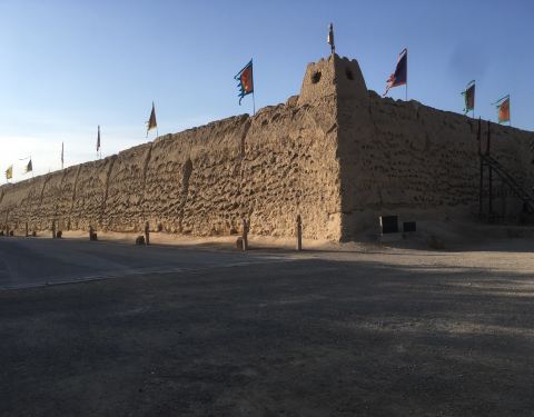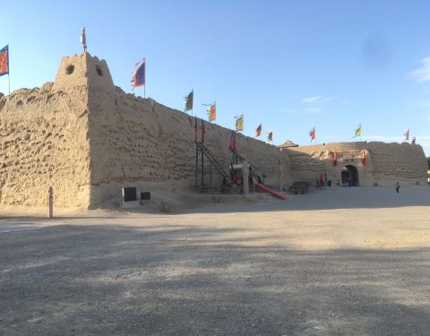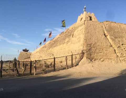 影视城内保存较好的一座清代的小城,有南北两个城门,翁城、城门楼都有,它由黄土夯筑,历经数百年的风雨侵蚀,依然屹立在边塞,很多古装影视剧都有它们出镜。