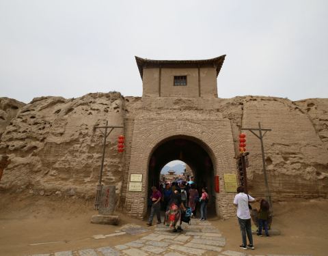 黄土城墙很高,大门就是《大话西游》中至尊宝与紫霞仙子分手的地方,这里很经典,也很吸粉,很多人驻足观看