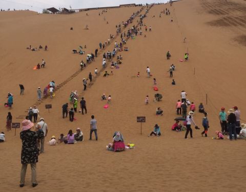 应该说是从黄河入口处进入沙坡头旅游区连通其他景点的主要通道,你必须上绳索捆绑的木梯才能比较省力的爬上沙坡,有些人体力不支占道影响了后面的人,这也充分体现了国人素质文明的程度,为了不被这些人挡着,只能花更多力气徒步沙漠往上,更加可恶的是在最后尽头都被一些自私的人给堵住出入口!你没长眼睛吗?不知道这是扶梯出入口,你坐着休息,你想过别人怎么走吗!自私鬼!体力不行就別上来!