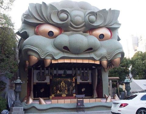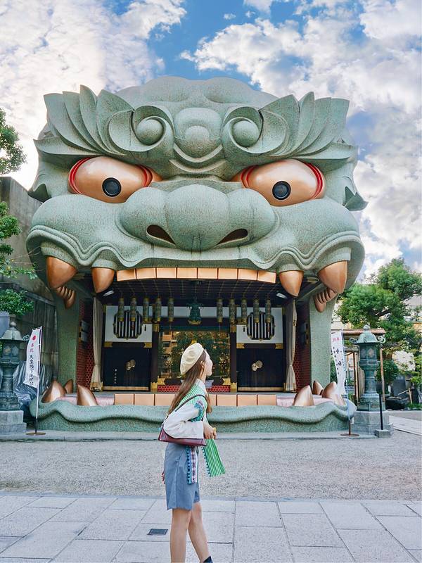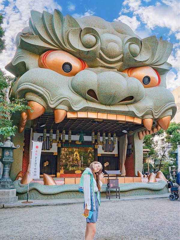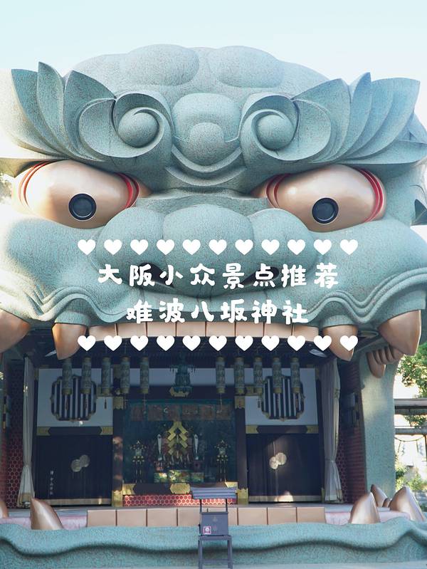 巷子里隐藏着一处人们口中的“狮子神社”,绝对也是日本众多神社中最为独特的存在。光从外形上看,将巨型狮子头造型设计成参拜的宫殿样子,想必日本人的脑洞也是够大了吧😊?...大阪小众景点推荐—难波八坂神社