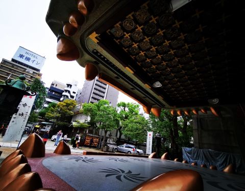 ...5分钟,人不少,距离难波站步行五分钟吧,鬼头里是个舞台,不知道啥时候会开,买个御守还是有必要的