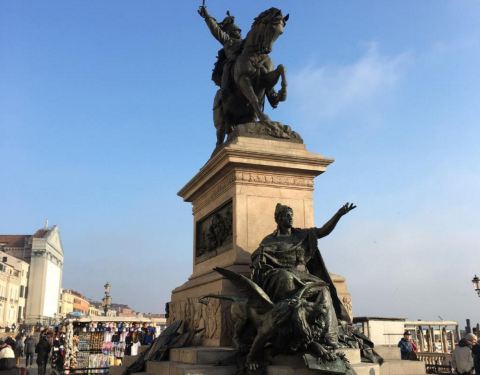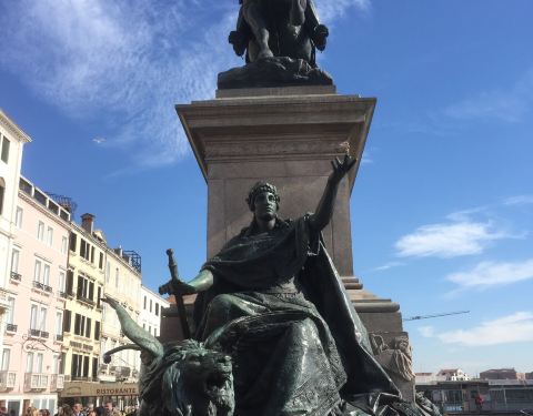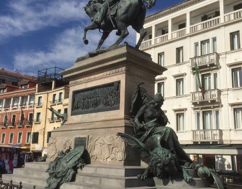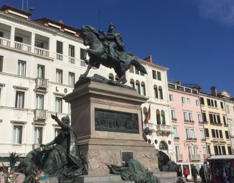 威尼斯的斯基亚沃尼滨河大街上有一座意大利开国国王维托里奥·埃马努埃莱二世雕像,这条街是码头到圣马可广场的必经之路,游客们都会在雕像前拍照、留影,我们也不例外。