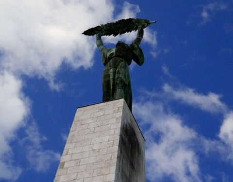 布达佩斯多瑙河的西岸有着绵延的山一直从链子桥一带延伸到下游的自由桥附近 自由桥和伊丽莎白大桥旁边的山虽然少了城堡这样巨大的建筑和教堂这班精美的景区 但植被密布的山上自由女神像还是十分惹人注目 同样的车行隧道口上没有了其他建筑 更显得雕像十分的雄伟