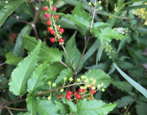 和美山植物生态 和美山自然生态丰富,野鸟跃跃争鸣,彩蝶翩翩于飞,颇有可观之处。贼仔树、山刈叶、颔垂豆、细叶馒头果、笔罗子都已长成神木级大树;榕树及蕨类最多,榕树须根柱地不必依赖他人搭支架; 乌毛蕨老师特别介绍三代同堂情景。