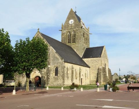 诺曼底战役中具有历史背景的城镇,电影最长的一天就是在这里拍摄的。约翰·斯蒂尔在教堂的尖顶上被人抓住的故事,现在那里有个假伞兵还挂在教堂的屋顶上,值得看看。