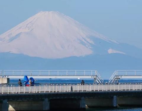 宛如后制贴图的富士山,是货真价实的馆山绝景,夕阳西下,披上晚霞的富士山也是另一幅移不开目光的景色
