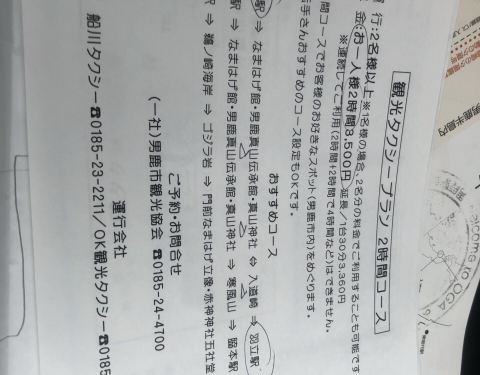 男鹿的交通实在是太不方便了,巴士非常少,时间间隔时间也很长,因为晚上还要赶去大鳄温泉,只能包了一辆出租车转一圈,7000日元两个小时。如果你是两个人也是7000日元两个小时。