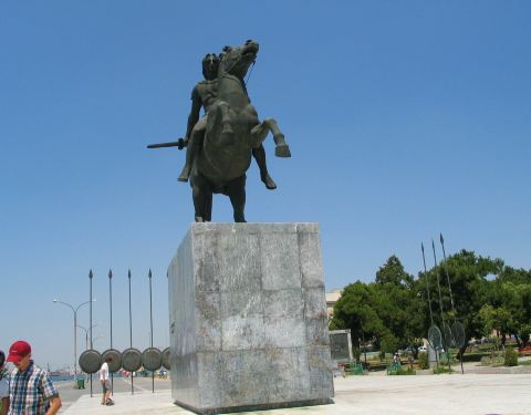 亚历山大大帝骑马持剑、驰聘沙场的雕像位于萨罗尼加市中心区域的海滨,这是到访该城市的一个必看景点...