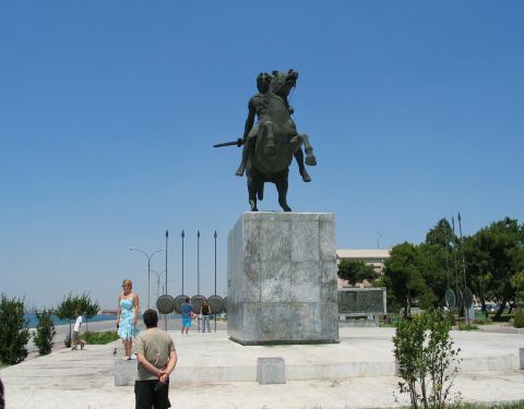 亚历山大大帝骑马持剑、驰聘沙场的雕像位于萨罗尼加市中心区域的海滨,这是到访该城市的一个必看景点,每天到此的游客不少,都要在这个雕像前拍照留念。