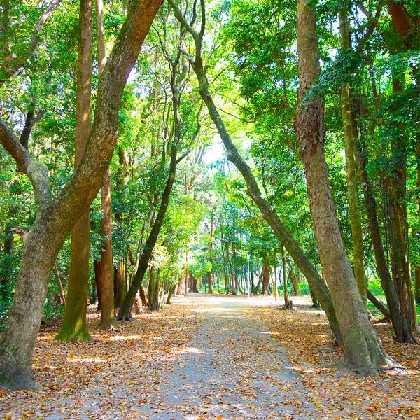 宫崎县是日本神话故事的起源,位于市区中心的“宫崎神宫”更供奉着日本第一位天皇——神武天皇,象征日本正式从“神”的传说转变至“人”的世界。宫崎神宫创立时间不详,据说早在日本神话时代便已存在,是祈求家庭和睦、子女安康的神社。 穿过树林的小径幽深静谧,带有几分神秘的气息。