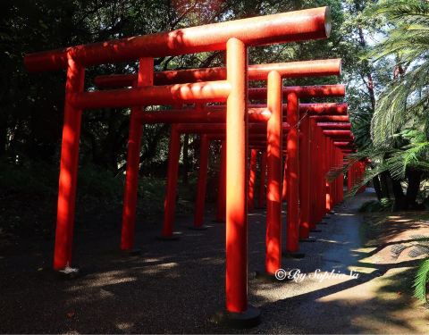 日本南九州宮崎市,古称“神武天皇宫”、“神武天皇社”、“神武天皇御庙”等,明治6年(1873年),改称“宫崎神社”。从宫崎jr站坐火车过去2分钟,再步行15分钟到。也可以选择在宫崎jr站外的巴士西2站坐305巴士几个站就直接到神社门口。宫崎神社门口有两棵几百年的古树显得分外庄严,神社右手边是五所稻荷神社,由几十个朱红色的鸟居指引着神社的路。居中的宫崎神社大殿,门口竖立着两个由百年白色衫树做成的大鸟居,加上淡黄色的石灯笼大道,外面围绕茂密的树林,宁静又庄严,怪不得这里以前是祭祀天皇的。