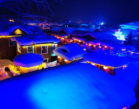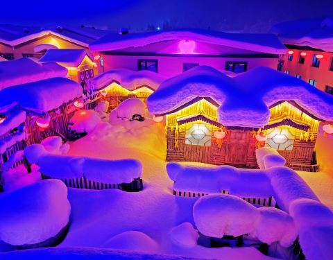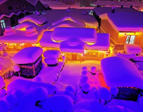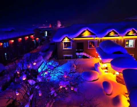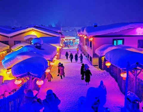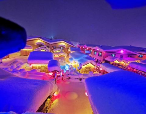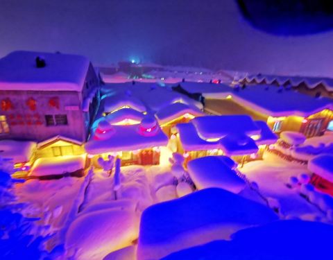 雪韵大街是中国雪乡的主干道,也是较热闹的街道,冬季晚上的夜景很美。这条不过500米长的街道两侧开着各种商店、旅馆,也能看到不少餐馆和摆在路边的小摊,人气景点梦幻家园也坐落在这条街上。雪韵大街较早是林场的森林小火车站,如今成了中国雪乡的商业街,在旅游旺季的夜晚,街道上灯笼齐明、游客成群,俨然一派繁华的景象。你可以在路边买点冻柿子、冻梨等小吃,也可以去农家餐馆品尝东北美食。值得一提的是,梦幻家园的后面有座不高的小山包(在园外,可从雪韵大街旁边的小巷过去),是俯瞰村子全景的好地方,常常被长枪短炮们占领,傍晚可以拍摄到袅袅炊烟笼罩下的村庄美景。