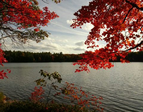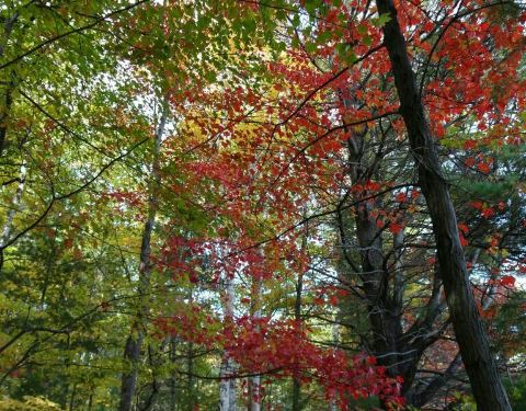 这是多伦多郊外一处深秋欣赏红叶的好地方,平静的湖面倒映出,红黄绿三色的枫树林,那样的美景让人无法想象