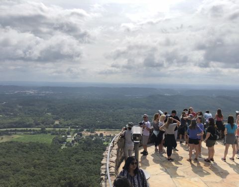 这里是田纳西州最南端的一个景点,一半人工一半天然地开发出来。经营到现在,是美国人非常喜欢来的地方。到最上面的观景台可以看见七个州,远胜我们中国所谓的“鸡鸣三省”。 花园中还有许多植物,其下有英文标识...