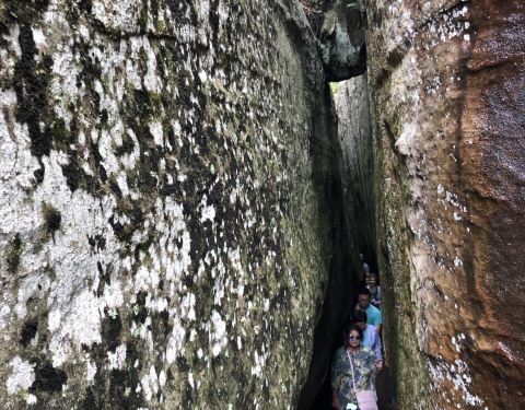 这里是田纳西州最南端的一个景点,一半人工一半天然地开发出来。经营到现在,是美国人非常喜欢来的地方。到最上面的观景台可以看见七个州,远胜我们中国所谓的“鸡鸣三省”。 花园中还有许多植物,其下有英文标识的解说。 有两处一线天。从石缝中挤过去相当有意思。花园中还有一处童话世界。在石穴中开出来。一个个童话看过来,有点眼花缭乱。